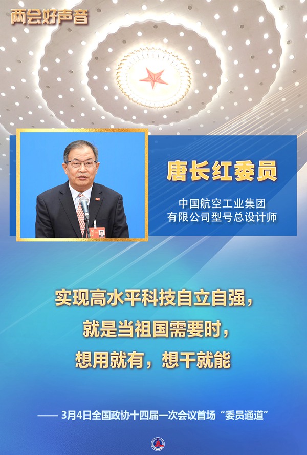 牢牢把握發(fā)展主動權(quán),必須實現(xiàn)高水平科技自立自強。中國航空工業(yè)集團有限公司型號總設(shè)計師唐長紅委員深有感觸地說,今年是運-20飛機首飛10周年,從抗疫救災(zāi)到國際人道主義援助,運-20彰顯了中國力量。去年,C919大型客機圓滿完成全部試飛任務(wù),國產(chǎn)大飛機家族在不斷壯大。