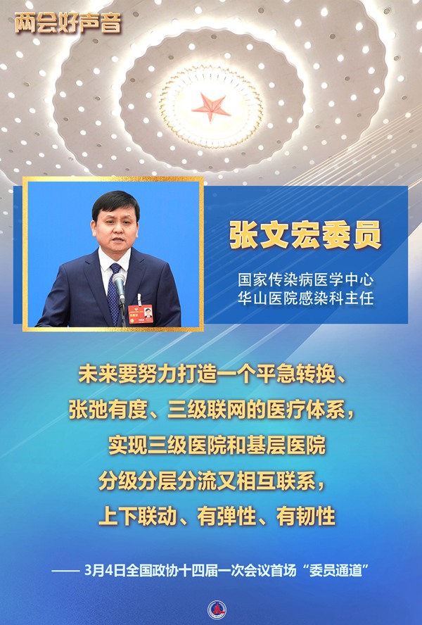 國家傳染病醫(yī)學(xué)中心華山醫(yī)院感染科主任張文宏委員認為,現(xiàn)在是繼續(xù)強化基層醫(yī)療衛(wèi)生體系一個非常好的時間節(jié)點。他建議說,未來要努力打造一個平急轉(zhuǎn)換、張弛有度、三級聯(lián)網(wǎng)的醫(yī)療體系,實現(xiàn)三級醫(yī)院和基層醫(yī)院分級分層分流又相互聯(lián)系,上下聯(lián)動、有彈性、有韌性。