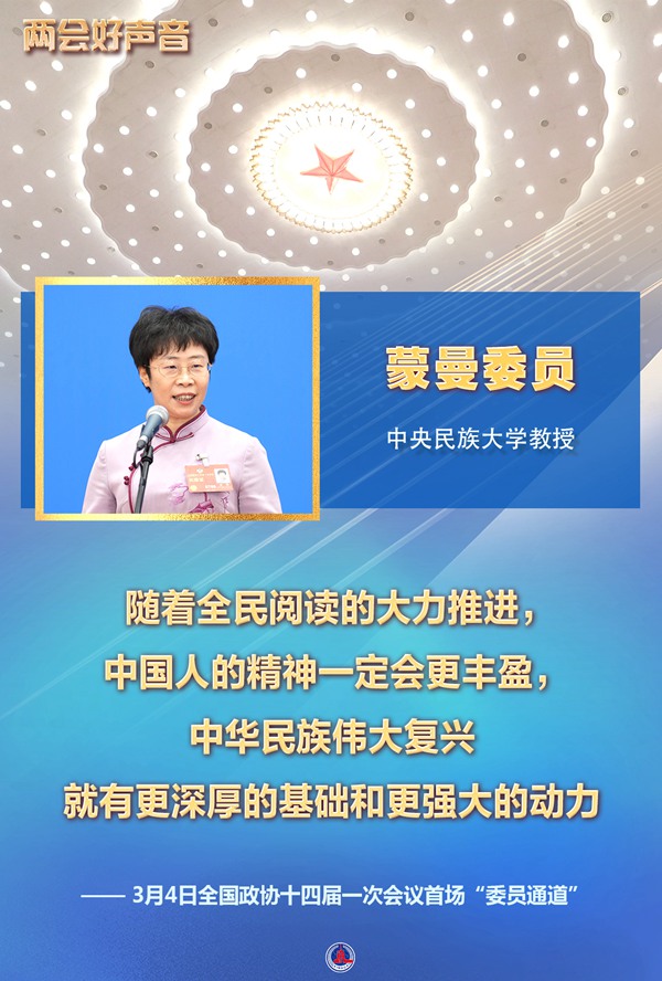 面對當(dāng)前人工智能發(fā)展日新月異的態(tài)勢,中央民族大學(xué)教授蒙曼委員說,越是科學(xué)發(fā)展、技術(shù)進步,就越要重視讀書。隨著全民閱讀的大力推進,中國人的精神一定會更豐盈,中華民族偉大復(fù)興就有更深厚的基礎(chǔ)和更強大的動力。