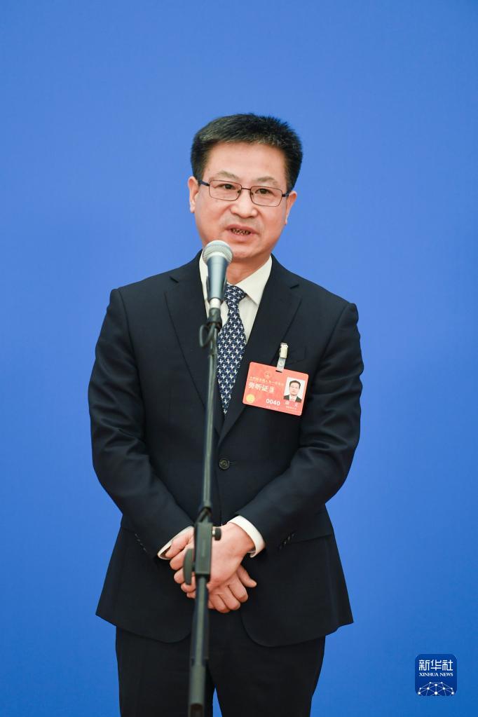 3月12日,第十四屆全國(guó)人民代表大會(huì)第一次會(huì)議舉行第三場(chǎng)“部長(zhǎng)通道”采訪活動(dòng)。這是國(guó)家統(tǒng)計(jì)局局長(zhǎng)康義接受媒體采訪。新華社記者 金皓原 攝