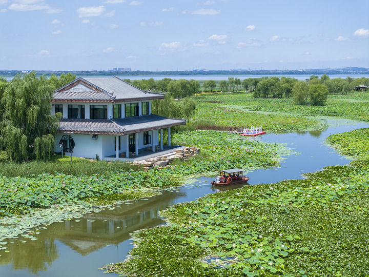 山西省長治市漳澤湖國家城市濕地公園一景(2025年7月5日攝,無人機照片)。新華社發(fā)(孫兵兵攝)